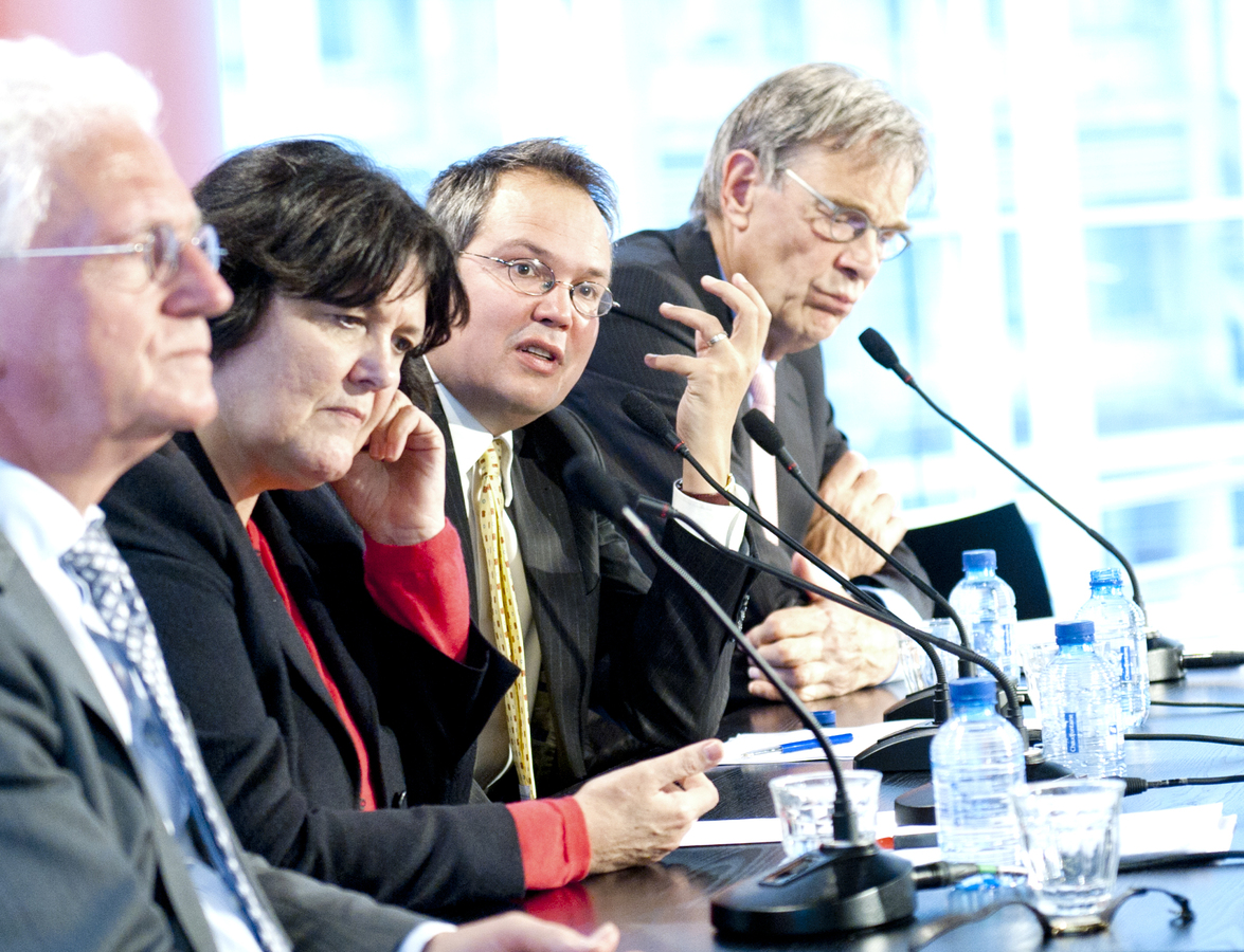 V.l.n.r.: Kars Veiling, Rosa Jansen, Wouter Veraart, Jan Loorbach